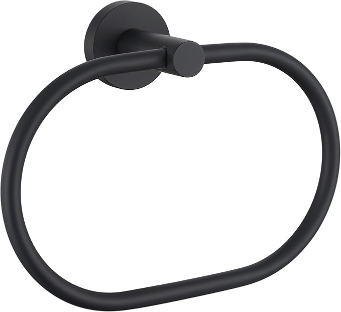 Suyar Matte Black Towel Ring, Stainless Steel Modern Swivel Hand Towel Holder for Bathroom Wall, Oval Shape