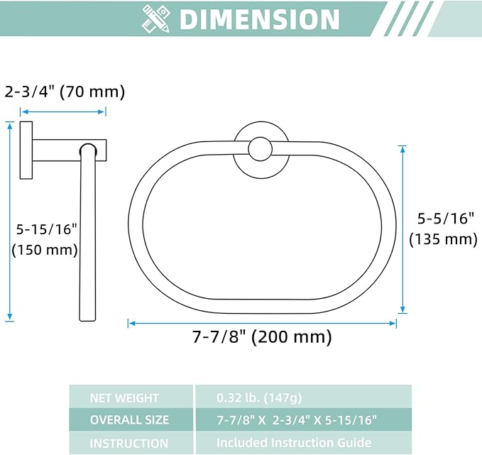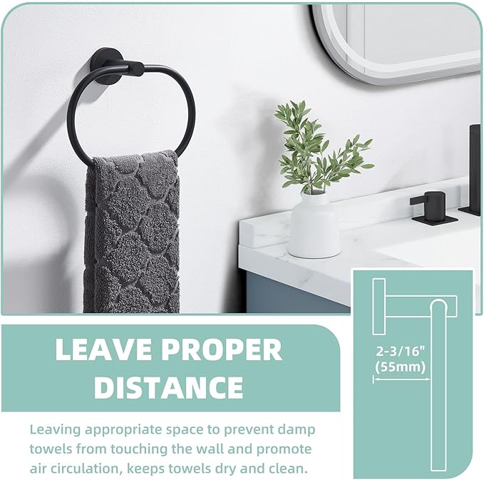- KEEP CLEAN AND DRY: depth from the wall to ring is 2-3/16"(55mm), not extend out far. Conducive to air circulation, dry out wet towel naturally. Oval shape for better spreading the towels without wrinkling
